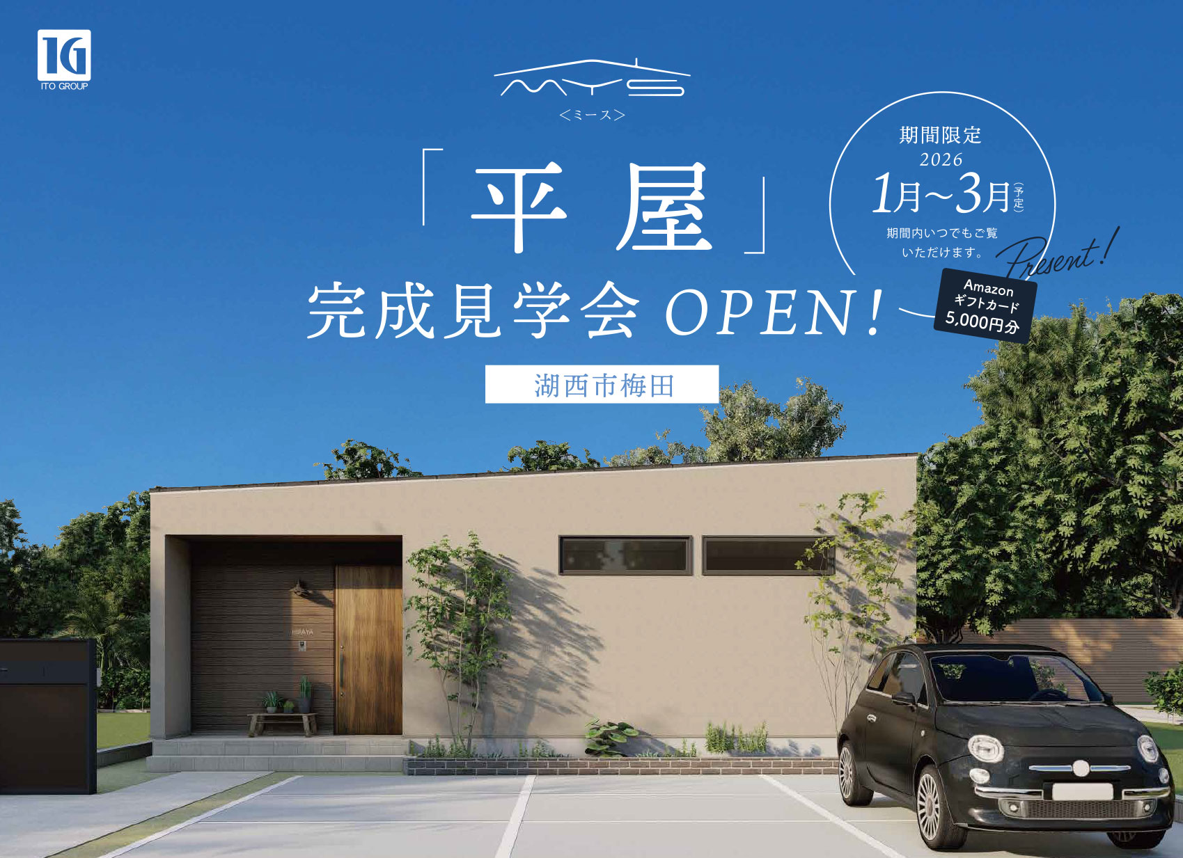 今回ご見学いただけるのは、フラットでシンプルな平屋の住まい。