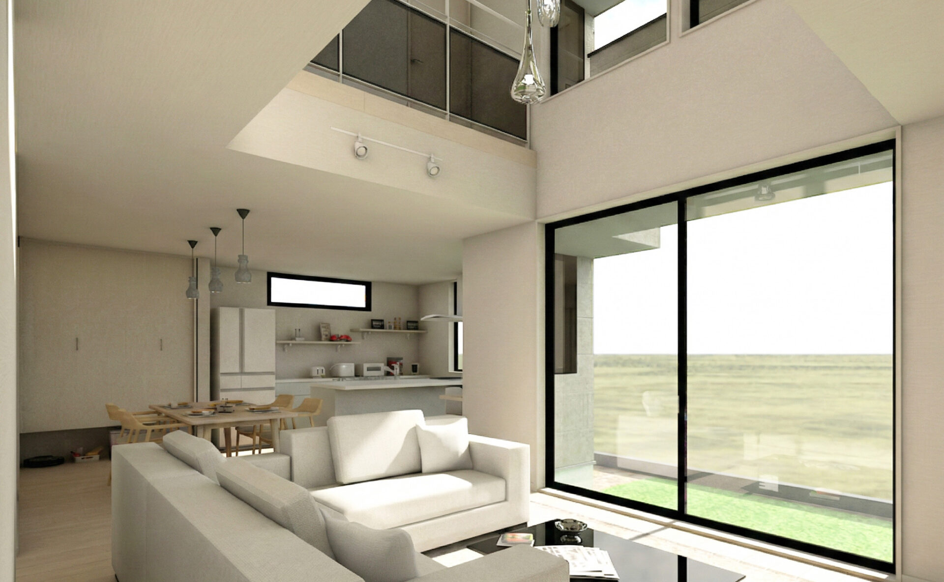 2026年4月グランドオープンの「恩地町モデルハウス」は、グレージュ(グレー×ベージュ)を基調にした落ち着きあるデザイン。