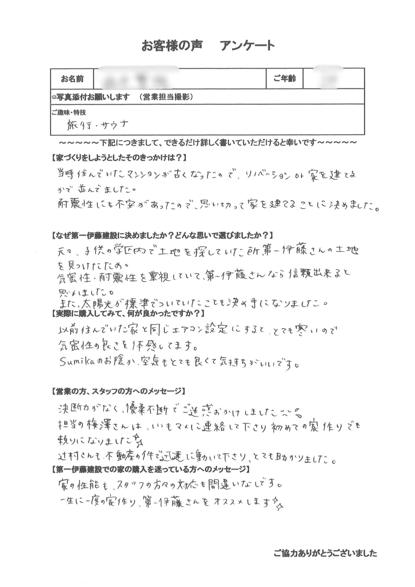 気密性・耐震性を重視していて、第一伊藤さんなら信頼できると思いました。