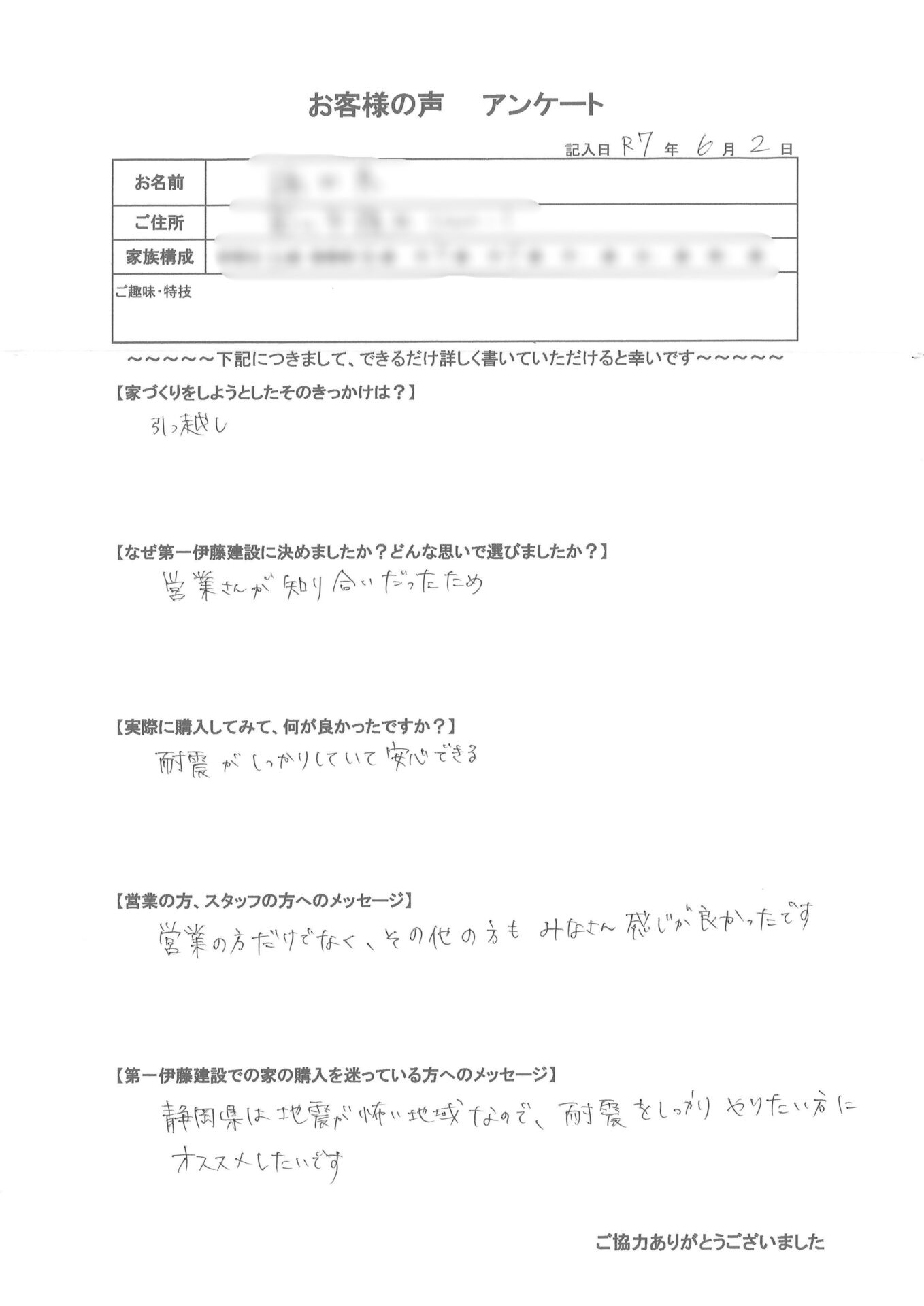静岡県は地震が怖い地域なので、耐震をしっかりやりたい方にオススメしたいです
