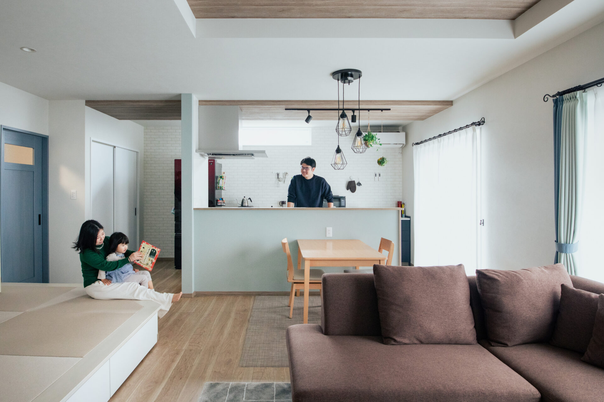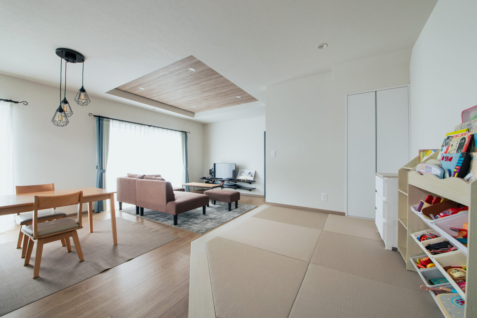 お子さんの遊び場になっている小上がりの畳スペース。ご主人が寝転んでも余裕のある大きさになっています。