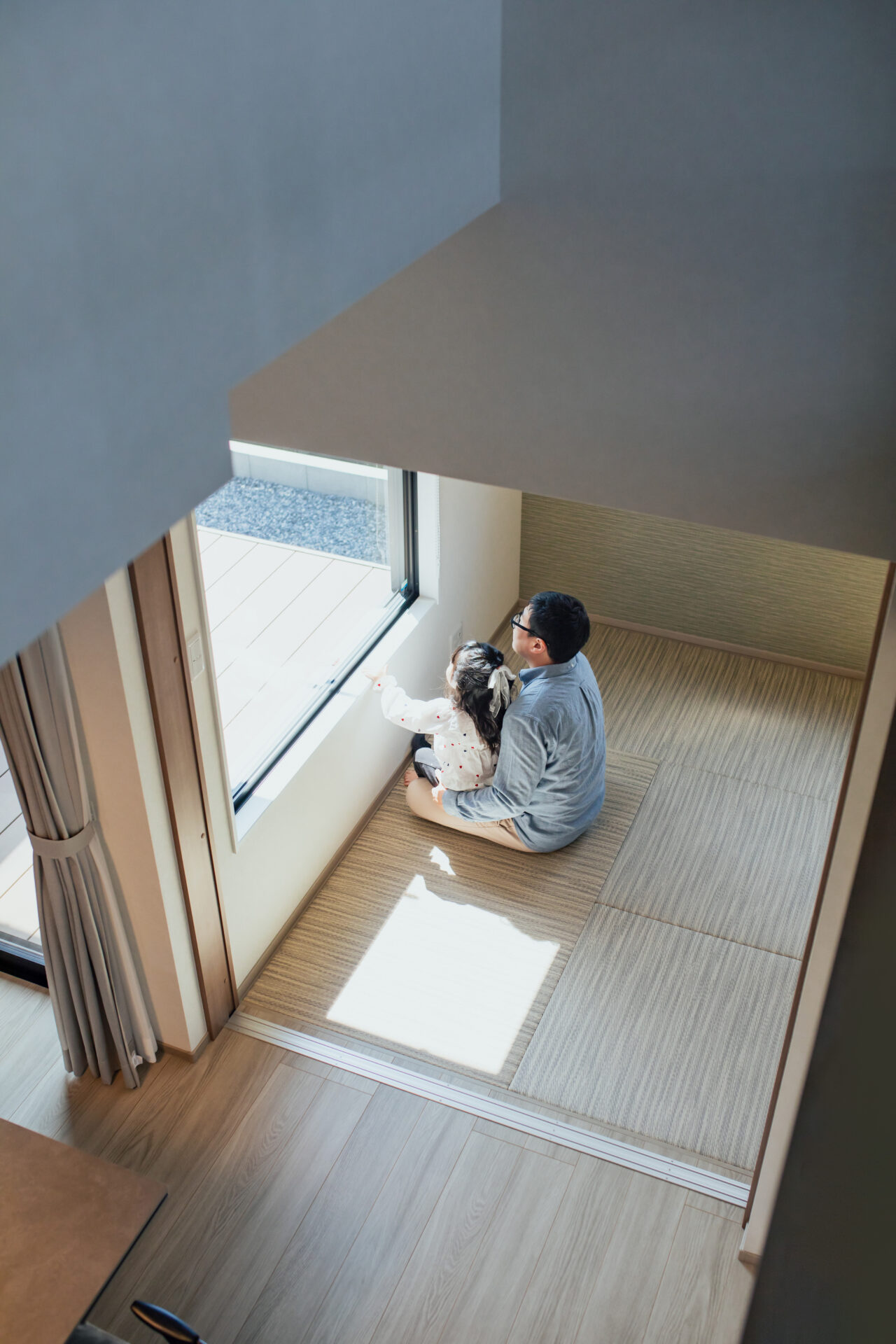 ダイニングの隣に設けた和室は、外を眺めてくつろげる場所。将来は、ご主人のご両親とも同居することを想定して作りました。