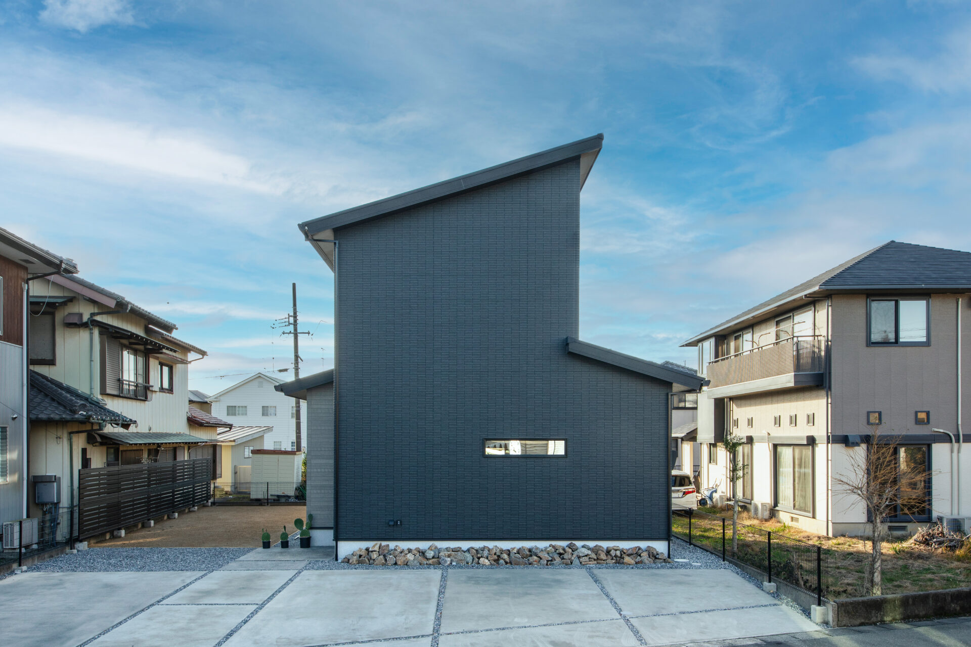 玄関周りはプライバシーにも配慮して、通りから隠すようなデザイン。落ち着きのある印象で、周囲の景観にも馴染んでいます、